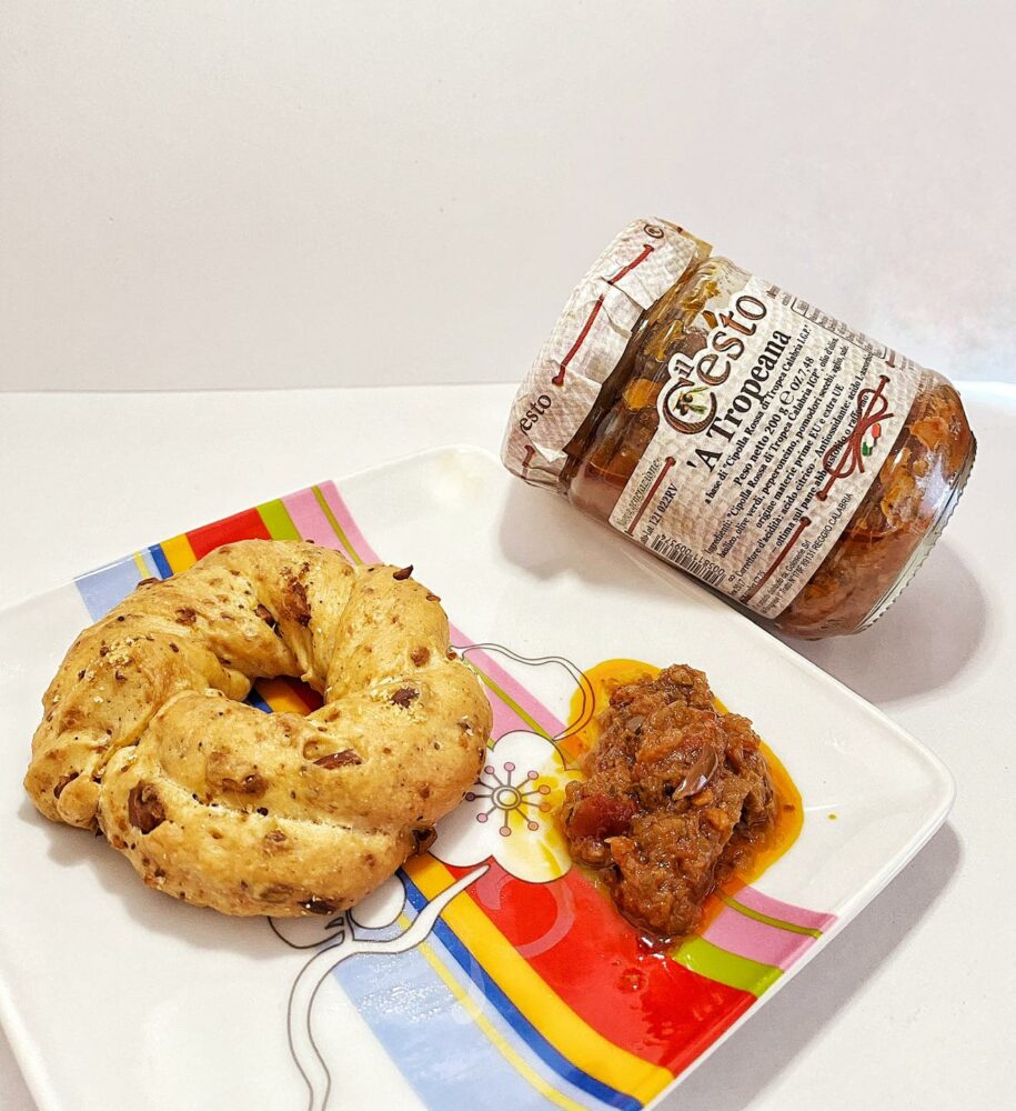 L’A Tropeana è un prodotto gustoso e tipico, particolarmente indicato su crostini, friselle o fette di pane abbrustolito o come pesto per condire una pasta.