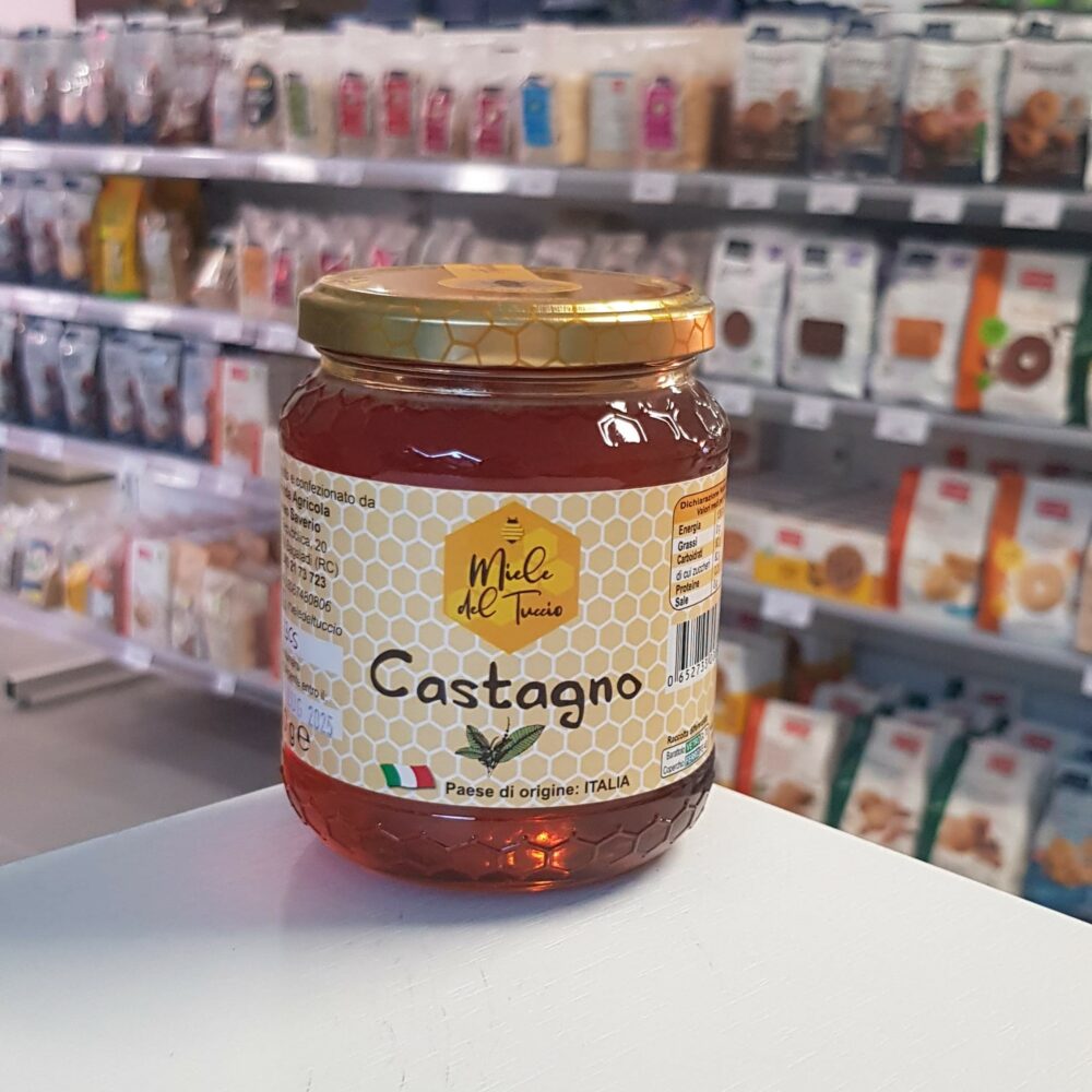 Il miele di castagno è un tipo di miele scuro con un sapore complesso e un odore aromatico. È noto per le sue proprietà anti-infiammatorie e anti-batteriche e contiene proteine, vitamine B e C e una varietà di sali minerali come manganese, potassio, calcio e ferro. A difference in molti altri mieli, il miele di castagno ha una colorazione che va dal giallo-marrone al quasi nero, con sfumature ambrate molto scure e intense. A causa della sua consistenza liquida, che è il risultato della sua alta quantità di fruttosio, il miele di castagno non cristallizza. Il suo sapore complesso è meno dolce rispetto ad altri mieli, con un retrogusto amarognolo che lo rende adatto per piatti salati come carni e formaggi stagionati, ma meno per dolcificare tisane o tè. Il miele di castagno è anche un antiossidante estremamente potente e contiene livelli elevati di acido fenolico, il che lo rende un alimento importante per combattere i radicali liberi causati da diversi fattori. Infine, grazie alle sue proprietà emollienti e lubrificanti, il miele di castagno può essere utilizzato per trattare le infezioni respiratorie, la tosse persistente, il mal di gola e problemi di digestione, incluse le ulcere gastriche e la barriera della secrezione di bile.