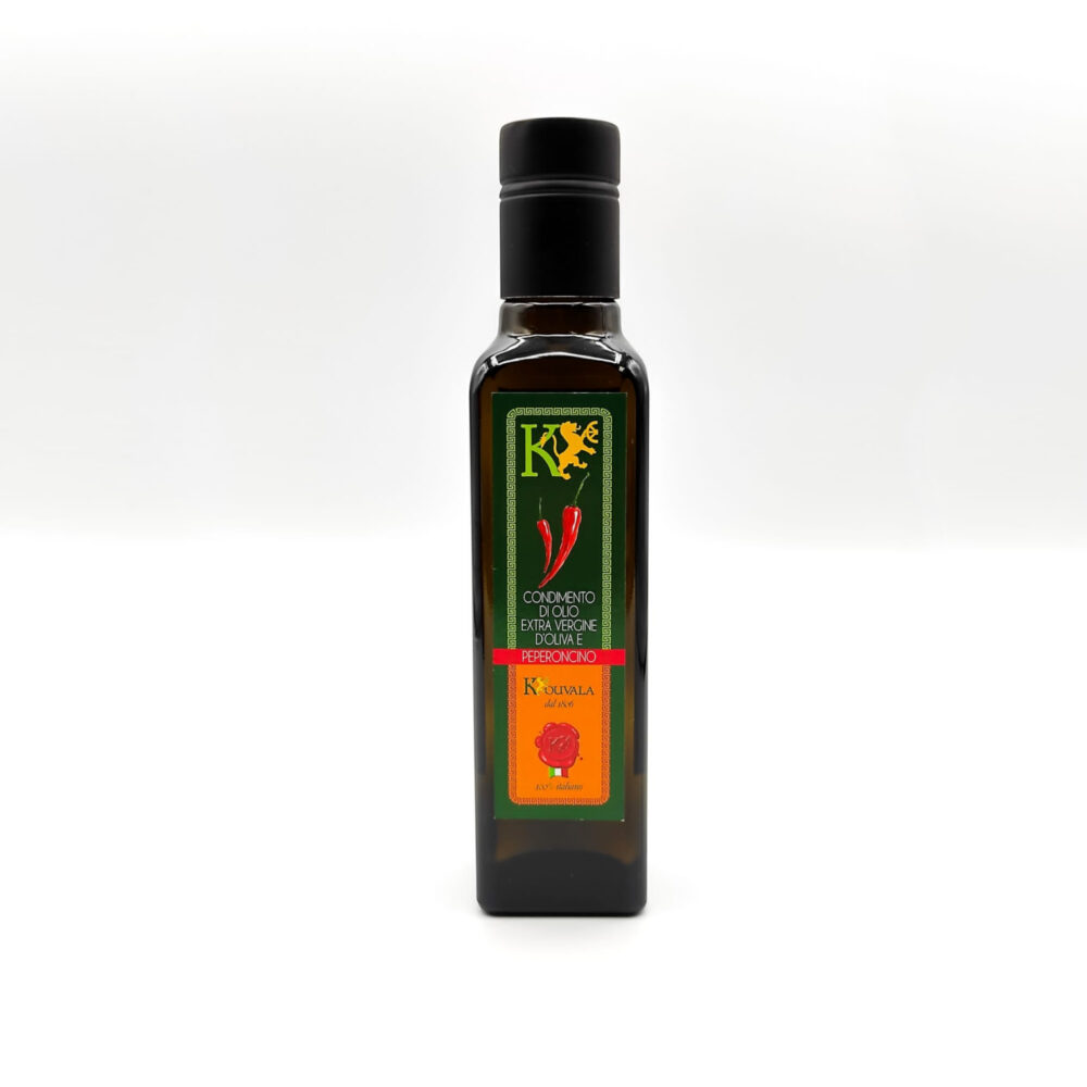 Prodotto con la spremitura a freddo di olive e peperoncini provenienti dalla nostra azienda agricola.