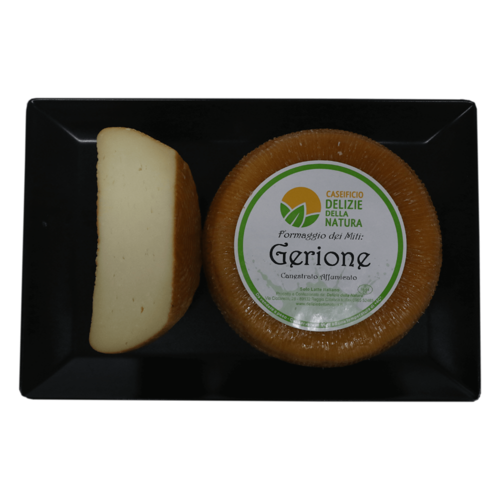 Canestrato affumicato di latte vaccinaProdotto con latte vaccino ed affinato al naturale.  E’ un formaggio morbido dal sapore intenso, pieno ed aromatizzato.