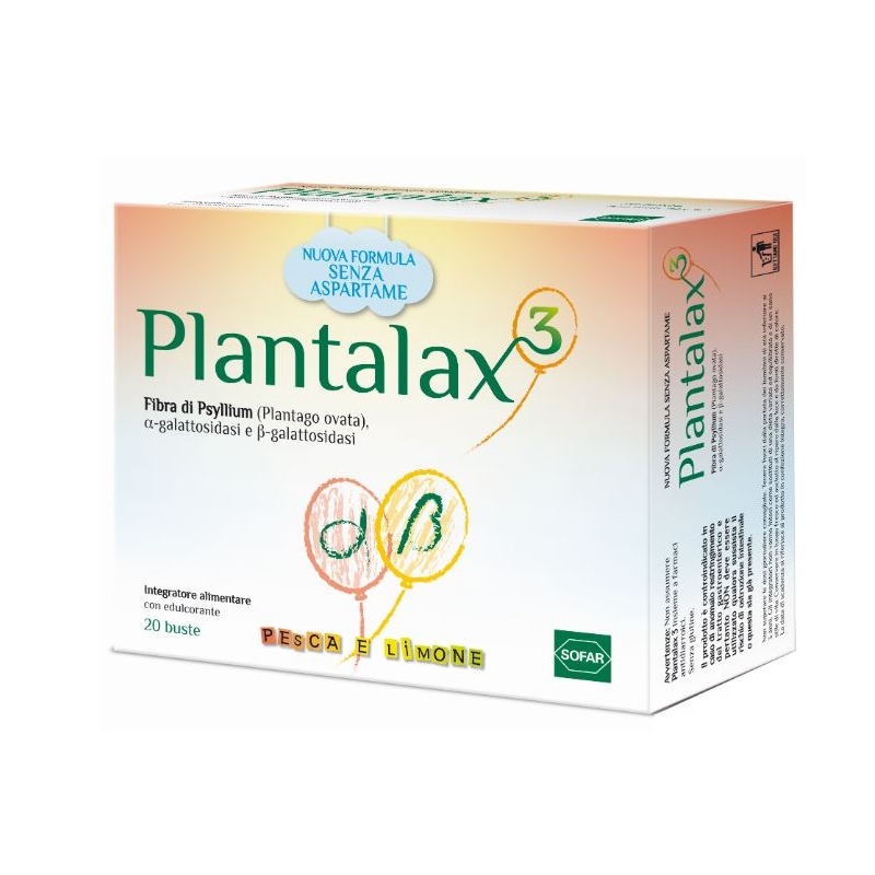 Integratore alimentare di fibra di Psillyum con edulcorante. La Plantago Ovata contenuta in Plantalax 3 ha un effetto prebiotico ed un’azione emolliente e lenitiva (sistema digerente). Contribuisce alla regolarità del transito intestinale e alla formazione di feci di consistenza e volume normale.