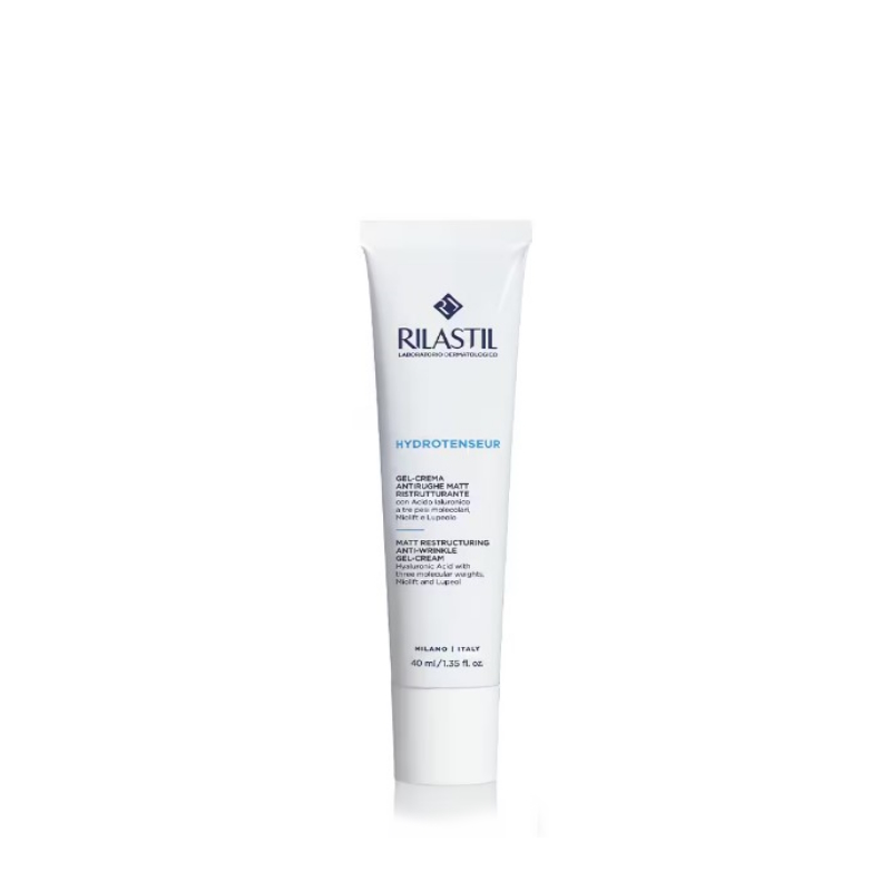 Gel-crema viso anti-rughe mattificante intensivo ristrutturante adatto per pelli miste che elasticizza la pelle e distende le rughe. Formula con Acido Ialuronico a tre pesi molecolari, Lupeolo e Miolift che aiutano a ristrutturare la barriera epidermica, contrastando la perdita di tono e compattezza.