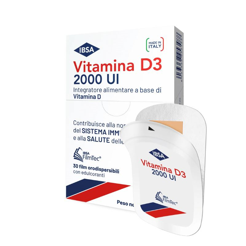 Integratore alimentare a base di vitamina D. La vitamina D entra in gioco in diversi processi dell’organismo umano. Contribuisce al normale assorbimento e al normale utilizzo del fosforo e del calcio da parte del nostro organismo, mantenendo livelli normali di calcio nel sangue e contribuendo anche al normale mantenimento delle ossa. È altresì noto che la vitamina D contribuisce alla normale funzione del sistema immunitario. Vitamina D3 rappresenta una integrazione di vitamina D da utilizzare per prevenire eventuali stati di carenza di questo nutriente. Vitamina D3 è disponibile sotto forma di film orodispersibili, una forma di assunzione dell’integratore molto semplice e pratica: